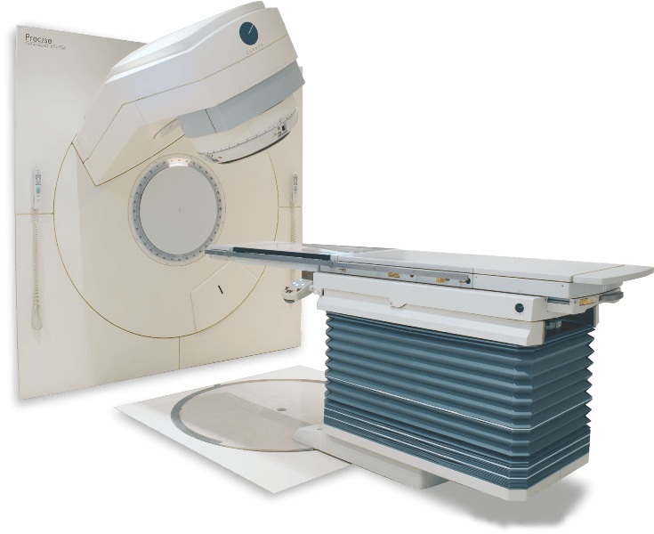 Nuestros tratamientos se realizan con el Acelerador Lineal Elekta Precise. Éste irradia con dos energías diferentes de fotones y tres de electrones, lo que permite realizar tratamientos tanto en lesiones profundas como superficiales, minimizando la dosis recibida en tejido sano.